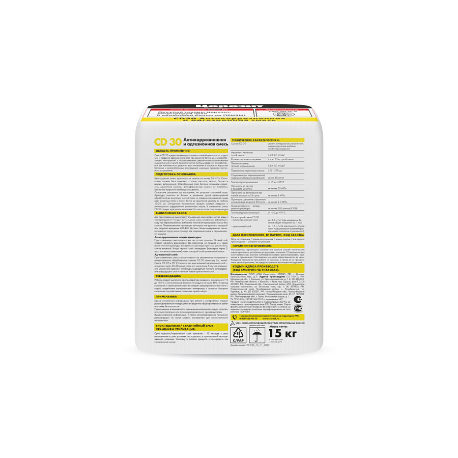 Антикоррозионная и адгезионная смесь Ceresit CD 30 - это профессиональный продукт, специально разработанный для защиты арматурных конструкций от коррозии. Средство представляет собой комбинацию минеральных наполнителей, цемента и специальных добавок, которые обеспечивают надежную защиту металлических поверхностей.
