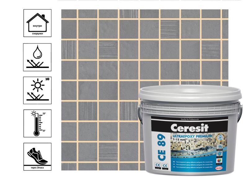 Эпоксидная двухкомпонентная затирка для швов Ceresit CE 89 - это превосходный материал для заполнения и уплотнения швов между плитками и керамической мозаикой.